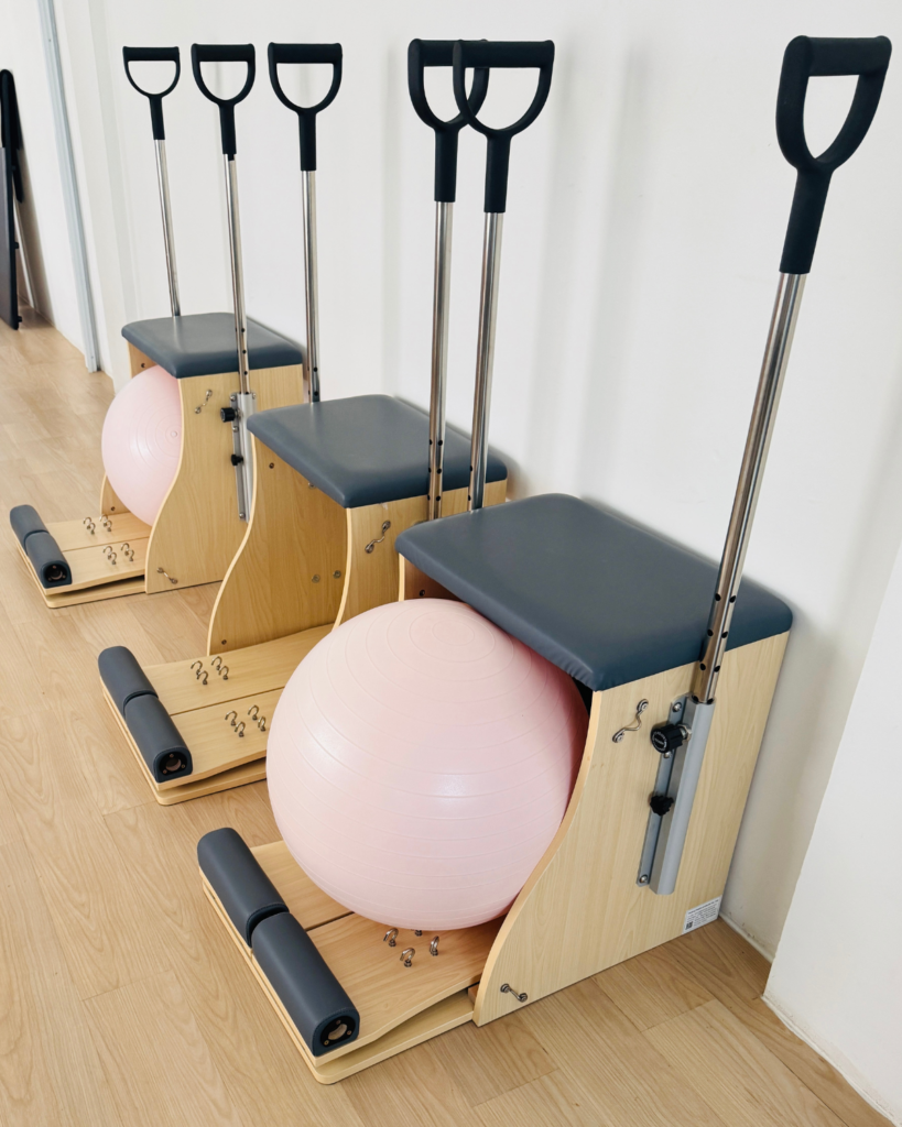 A compact Pilates chair that challenges core strength, balance, and lower-body control while encouraging precise, functional movement.